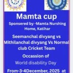 अंतर्राष्ट्रीय दिव्यांगता दिवस के अवसर पर ममता कप का हुआ आगाज,मिथिलांचल टाइगर्स दिव्यांग क्रिकेट टीम के कप्तान आसित के तूफान में उड़ा सनराइज क्लब की सामान्य क्रिकेट टीम