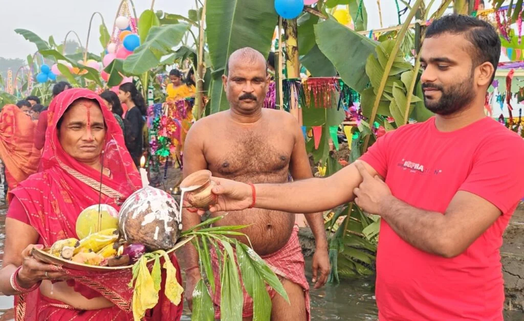 जैसे हीं आकाश में भगवान सूर्य की पहली किरण दिखाई दी वैसे हीं छठ व्रती और श्रद्धालुओं ने अर्घ्य देना प्रारंभ किया। व्रतियों ने परिजनों के साथ विभिन्न प्रकार के पकवान व फल आदि पूजन सामग्रियों से सुसज्जित सूप सहित भगवान सूर्य को अर्घ्य प्रदान किया। छठव्रत के दौरान नियम निष्ठा से अर्घ्य देकर व्रतियों और श्रद्धालुओं ने भगवान सूर्य से परिजनों के लिए आयुष्य आरोग्यता और सुख समृद्धि का आशीष मांगा।