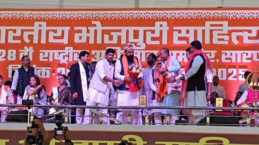 अमनौर ।भोजपुरी सर्वाधिक बोली जाने वाली समृद्ध भाषा है। यह देश विदेश की भाषा है, सामूहिक प्रयास से इसे आंठवी अनुसूची में शामिल में शामिल कराया जाएगा। उक्त बाते बिहार सरकार के डिप्टी सीएम व गृहमंत्री सम्राट चौधरी ने कही। सम्राट चौधरी 28वीं अखिल भारतीय भोजपुरी साहित्य सम्मेलन के उद्घाटन समारोह में अमनौर पहुंचे थे। सम्राट चौधरी ने कहा कि भोजपुरी का सम्मान और विस्तार बिहार सरकार अपना सम्पूर्ण प्रयास करेगी। कहा कि लोगों ने एनडीए की सरकार पर लोगों ने भरोसा किया है तो सरकार 2030 से पहले बिहार में ही लोगों को रोजगार देने का काम करेगी। सरकार की नीति पर अपनी बात रखते हुए कहा कि बिहार की धरती पर कोई माफिया नही रहेगा अगर रहेगा तो उसकी जगह जेल में होगी। स्कूल कॉलेज के आस पास भी महिला सुरक्षा को मजबुत किया जाएगा ताकी महिलाएं सुरक्षित रूप से पठन पाठन कर सके। अमनौर को अनुमंडल बनाने की स्थानीय विधायक मंटू सिंह की मांग पर कहा कि वे इसे याद रखेगे, आगे जब नया अनुमंडलल बनाने की बात सामबे आयेगा अमनौर को भी उसमें शामिल किया जाएगा।