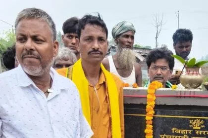 अररिया:मिर्जापुर पंचायत में पंचायत सरकार भवन का मुखिया ने किया शिलान्यास