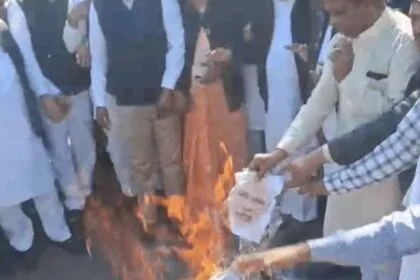 अजमेर कांग्रेसियों ने प्रधानमंत्री का पुतला फूंका