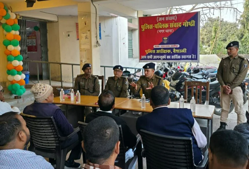 -डॉ० संजय (हाजीपुर )-पुलिस अधीक्षक,वैशाली,विक्रम सिहाग द्वारा नगर थाना परिसर में पुलिस -पब्लिक संवाद गोष्ठी का आयोजन किया गया। इस अवसर पर स्थानीय नागरिक उपस्थित हुए तथा अपनी विभिन्न समस्याओं एवं शिकायतों को सीधे पुलिस अधीक्षक के समक्ष रखा।
