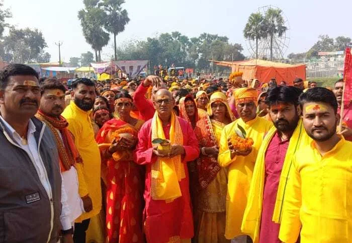 कलश यात्रा नरसिंह भानपुर शिवमंदिर से होकर परमानंद छपरा होते हुए नवकारा जर्तिमईया के नजदीक लगुनिया के पास पहुँच गंडक नदी से जलभरी की रश्म वैदिक मंत्रोच्चारण के साथ पूरी की गई।जिससे चारो तरफ भक्तिमय माहौल बना हुआ था।शोभा यात्रा परंपरिक ढोल-नगाड़ों और जय श्री राम, हर हर महादेव के नारों के साथ विभिन्न मार्गों से निकलकर यज्ञ स्थल पर पहुंची, जहां वैदिक मंत्रोच्चार के साथ कलश स्थापना के साथ नौ दिवसीय अनुष्ठान शुरू हुआ।