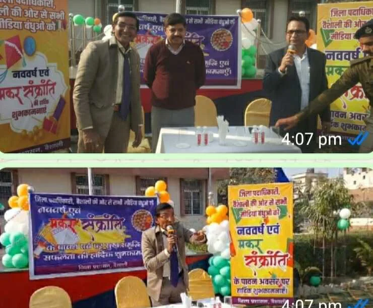 इस अवसर पर जिलाधिकारी, वैशाली की ओर से आयोजन में शामिल होने वाले सभी मीडिया बंधुओं को नव वर्ष की डायरी एवं कलम सप्रेम भेंट की गई । जिलाधिकारी,वैशाली,वर्षा सिंह की ओर से जिले के समस्त मीडिया बंधुओं को मकर संक्रांति की हार्दिक शुभकामनाएं- का संदेश भी दिया गया।