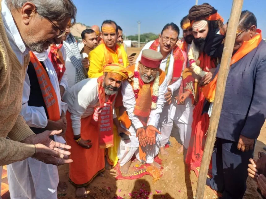 अनुष्ठान महामंडलेश्वर स्वामी प्रखर महाराज के सान्निध्य में आयोजित होगा ।भूमि पूजन के लिये पूजा अर्चना यजमान मुख्य यजमान नंदूमहाराज, राधेश्याम शर्मा, सुशील ओझा, लोकेंद्र शर्मा (राष्ट्रीय उपाध्यक्ष, आल इंडिया ब्राह्मण फेडरेशन), वीके शर्मा (सेवानिवृत्त जज एवं अध्यक्ष, महर्षि गौतम महासंघठन वृज क्षेत्र ) ने की इसके साथ ही अग्नि कोण में पहले हवन कुंड की आधारशिला भी रखी गयी ।इस दौरान नंदू महाराज, भजन गायक खाटू श्याम श्याम चरण महाराज ,नरसिंह मंदिर अजमेर ,ब्रह्मचारी महाराज, कृष्णानंद महाराज, पंडित कैलाश नाथ दाधिच, आचार्य नेहरू पंडित, रिटायर जज अजय शर्मा, पूर्व पालिका अध्यक्ष सूरज नारायण पाराशर ,दामोदर शर्मा ,अरुण पाराशर, डॉ कुलदीप शर्मा, नवीन शर्मा, , लोकेंद्र शर्मा, समिति के मुख्य संयोजक सुशील ओझा, नरेंद्र शर्मा, समिति के कोषाध्यक्ष अशोक जोशी, राधेश्याम शर्मा , राजेश अग्रवाल, पूर्व भाजपा मंडल अध्यक्ष ओमप्रकाश पाराशर, ईश्वर पाराशर, हर्षित शर्मा, कृष्ण गोपाल वशिष्ठ, सत्यनारायण शास्त्री, अरुण पाराशर ,अरुण दीक्षित ,पूर्व आईजी कल्याणमल शर्मा, चंद्रशेखर गौड़, जयकुमार पाराशर,मधुसूदन भाऊ, गिरीश पाराशर ,कृष्ण गोपाल पाराशर, हर्ष पाराशर,सहित अनेक संत महंत और पुरोहित मौजूद रहे ।