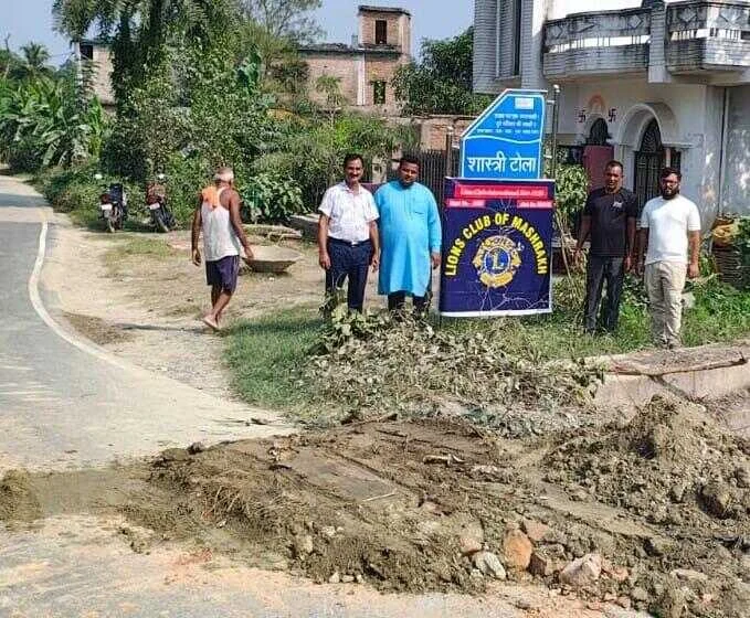 सारण:मशरक एकमा पथ के टूटे हिस्से को लायंस क्लब ऑफ मशरक ने मरम्मत कराया