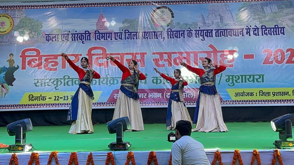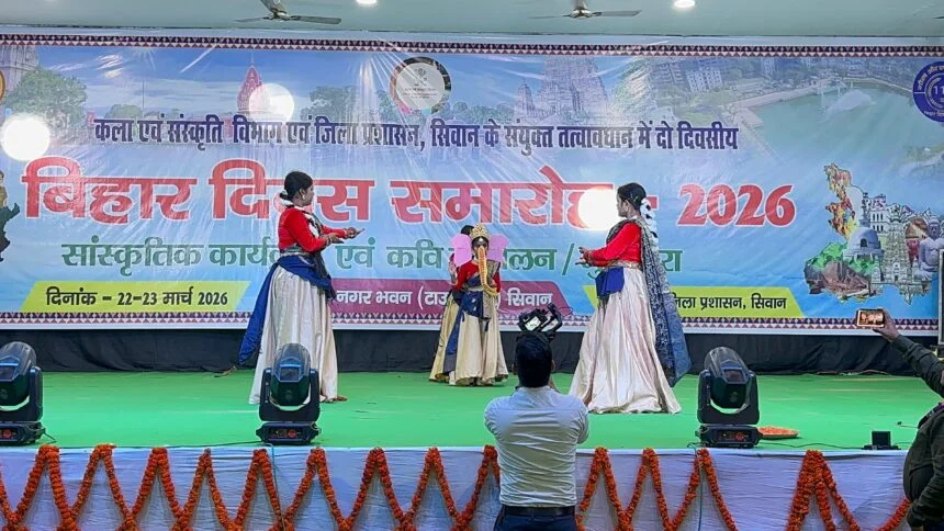 सीवान :बिहार दिवस के अवसर पर कला संस्कृति विभाग एवं जिला प्रशासन के संयुक्त तत्वावधान में रविवार को टाउन हॉल में सांस्कृतिक कार्यक्रम का आयोजन किया गया। जिसका उद्घाटन जिला पदाधिकारी विवेक रंजन मैत्रेय एवं एसपी पूरन कुमार झा ने द्वीप प्रज्वलित कर किया। वहीं कार्यक्रम की शुरुआत शहर की प्रसिद्ध संस्था नृत्योदय द परफॉर्मिंग आर्ट्स (नटपा) की प्रशिक्षु नृत्यांगनाओं श्रेया द्विवेदी, अंजली कुमारी, दीक्षा रानी एवं संस्था के प्रबंध निदेशक अभिषेक श्रीवास्तव की पुत्री अभ्यांशी द्वारा गणेश वंदना नृत्य से हुई।
