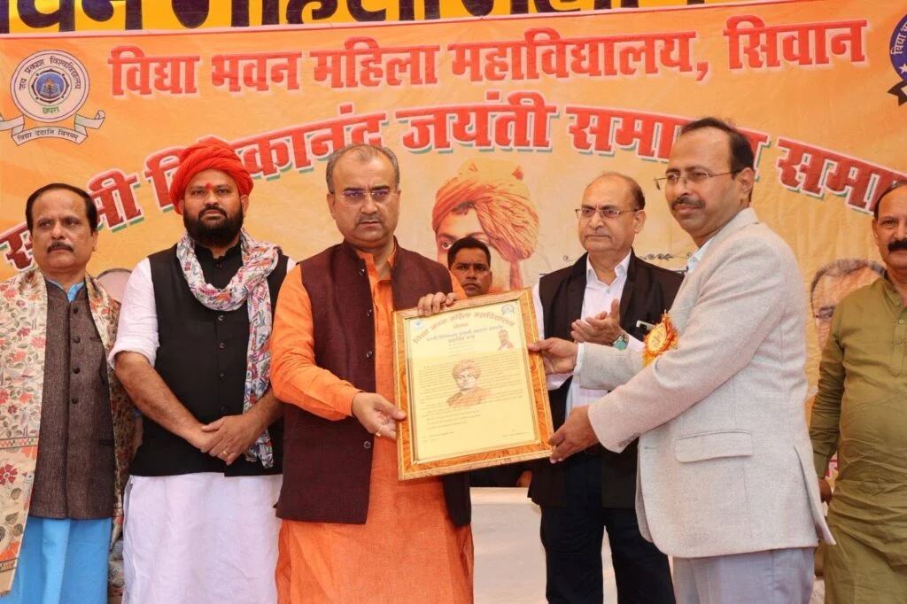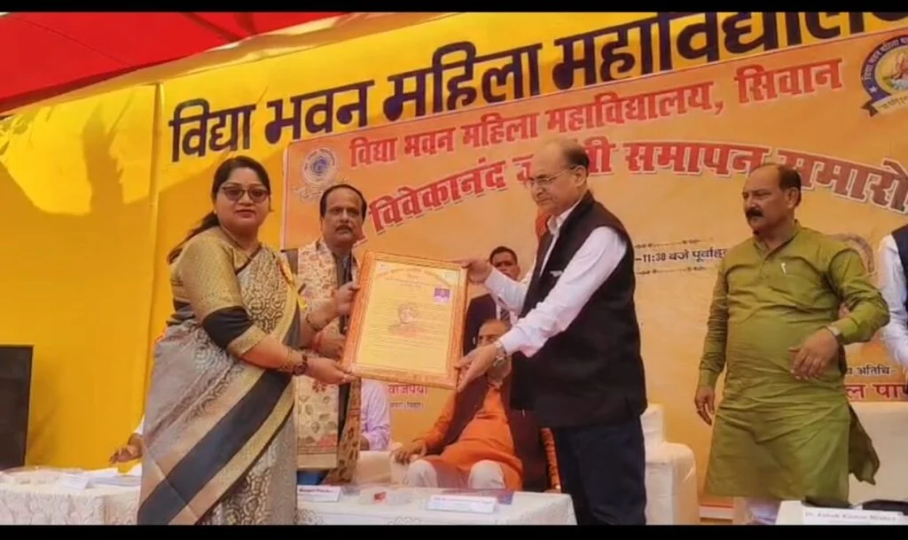 सिवान:आज दिनांक 21.02.2026 को सिवान जिले के विद्या भवन महिला महाविद्यालय सिवान में “विवेकानंद जयंती समापन समारोह” के अवसर पर एक कार्यक्रम का आयोजन किया गया ।इस कार्यक्रम की अध्यक्षता जयप्रकाश विश्वविद्यालय छपरा के कुलपति प्रो. डॉ. परमेंद्र कुमार वाजपेई ने किया। कार्यक्रम में मुख्य अतिथि श्री मंगल पांडेय जी, माननीय मंत्री, स्वास्थ्य एवं विधि , बिहार सरकार रहे।