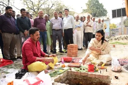 हाजीपुर:‘सबका सम्मान–जीवन आसान’ की दिशा में प्रतीक्षालय निर्माण के लिए जिलाधिकारी ने की भूमि पूजन